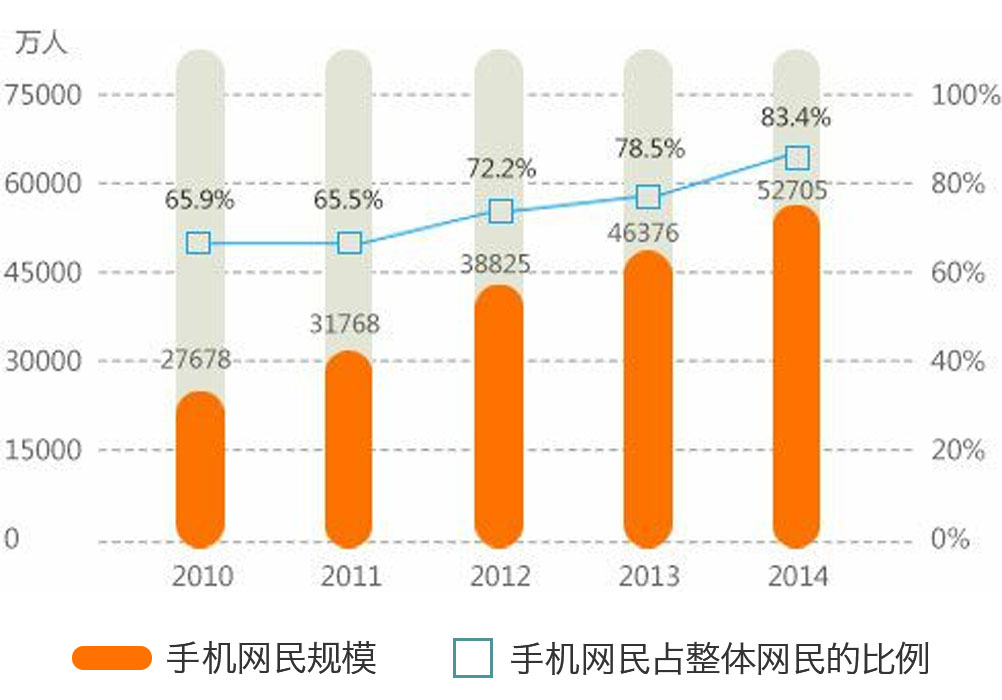 截至2014年底,手机网民突破